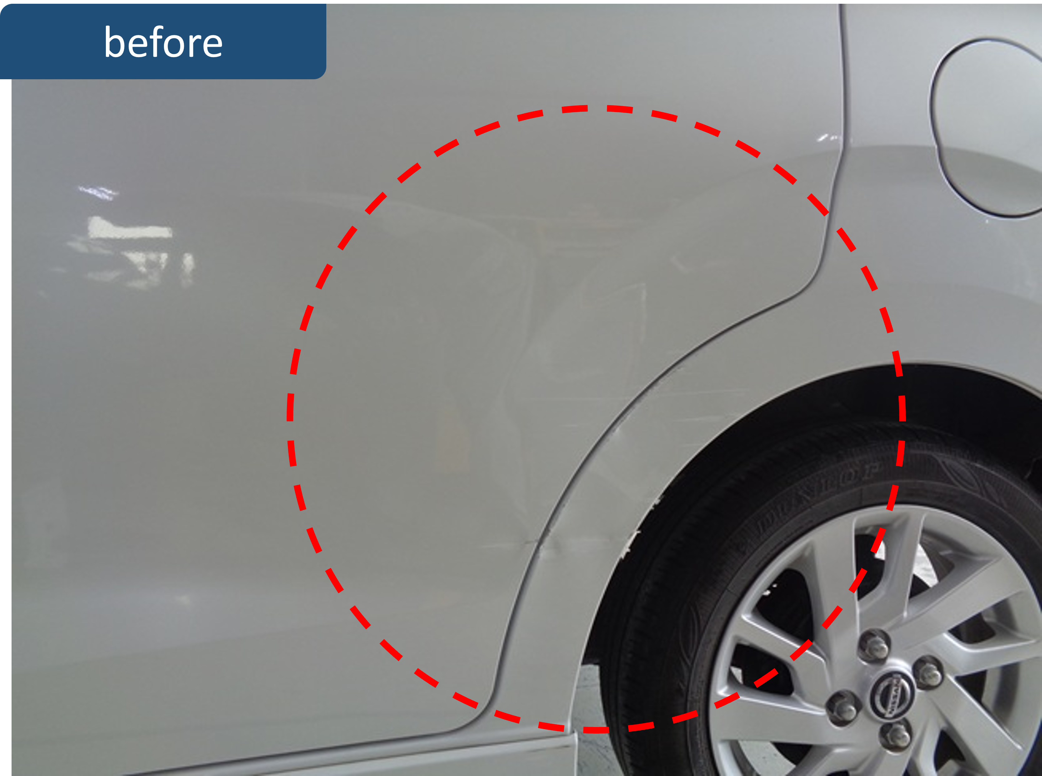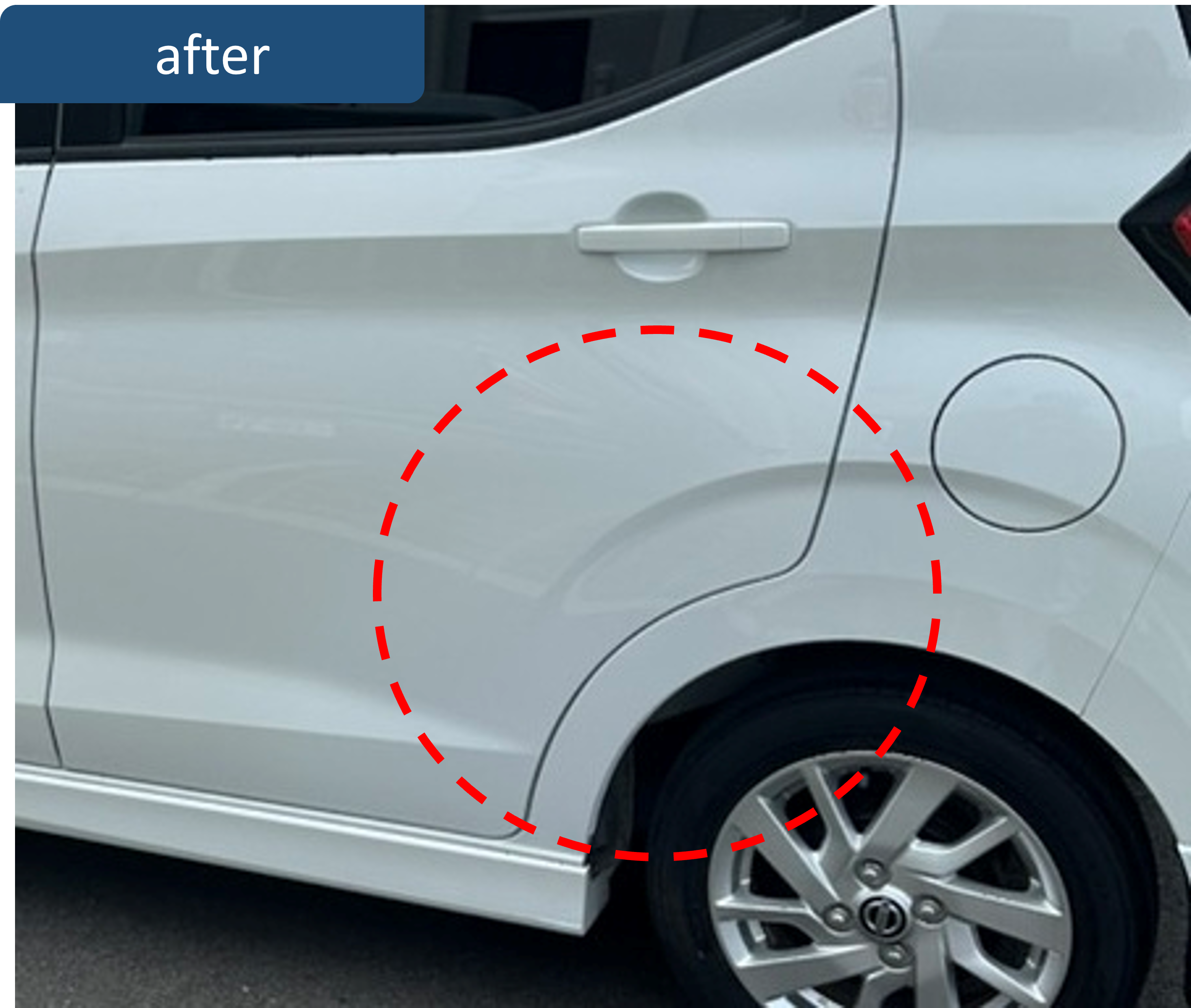 左リアドア鈑金修理、左リアフェンダー鈑金修理